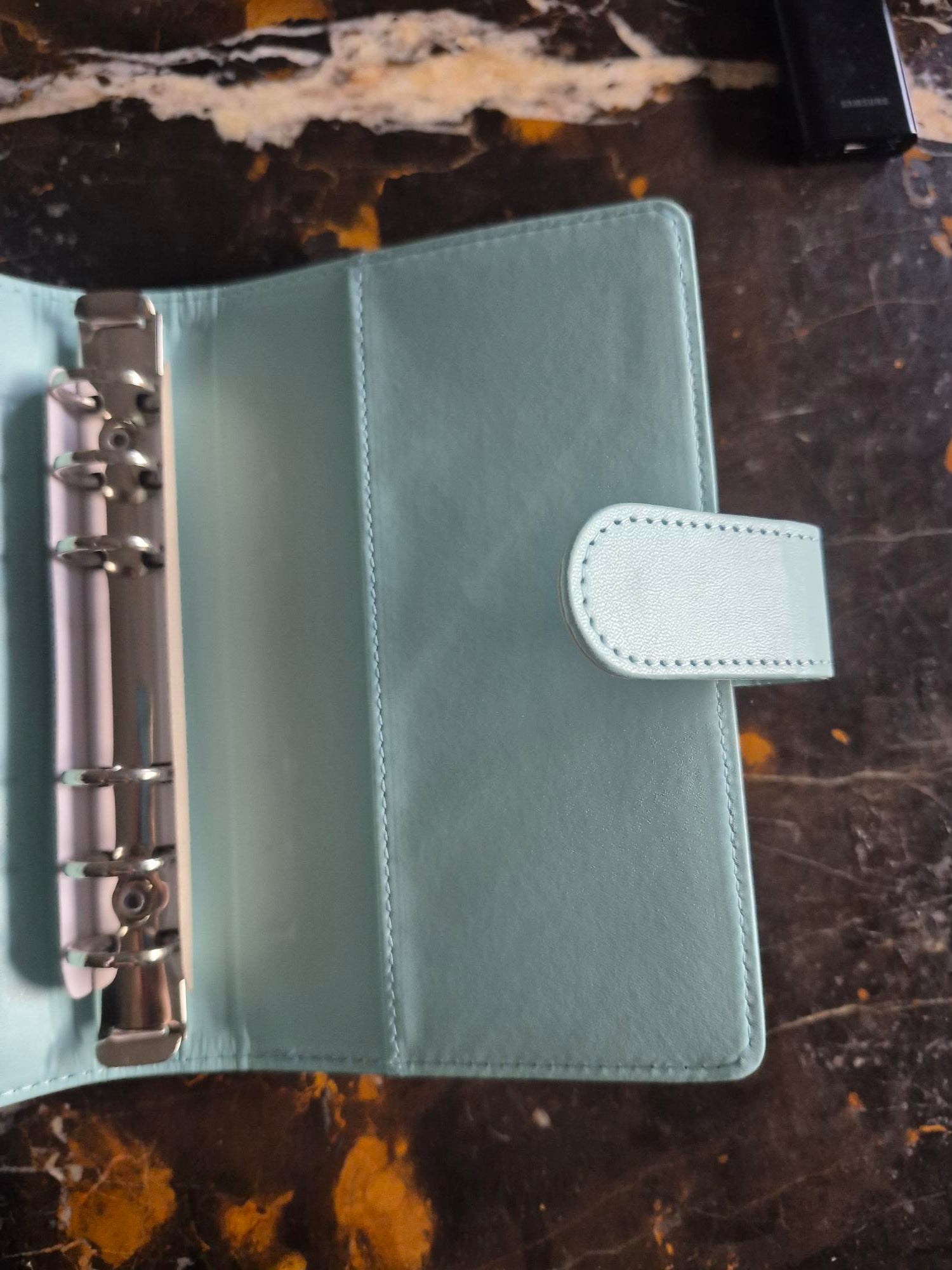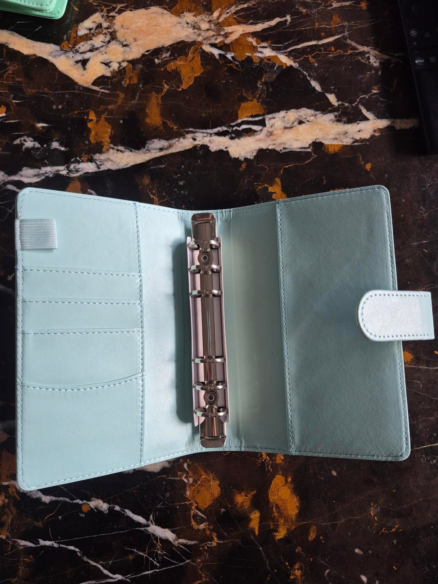 Classeur A6 bleu ciel à anneaux pour enveloppes budget